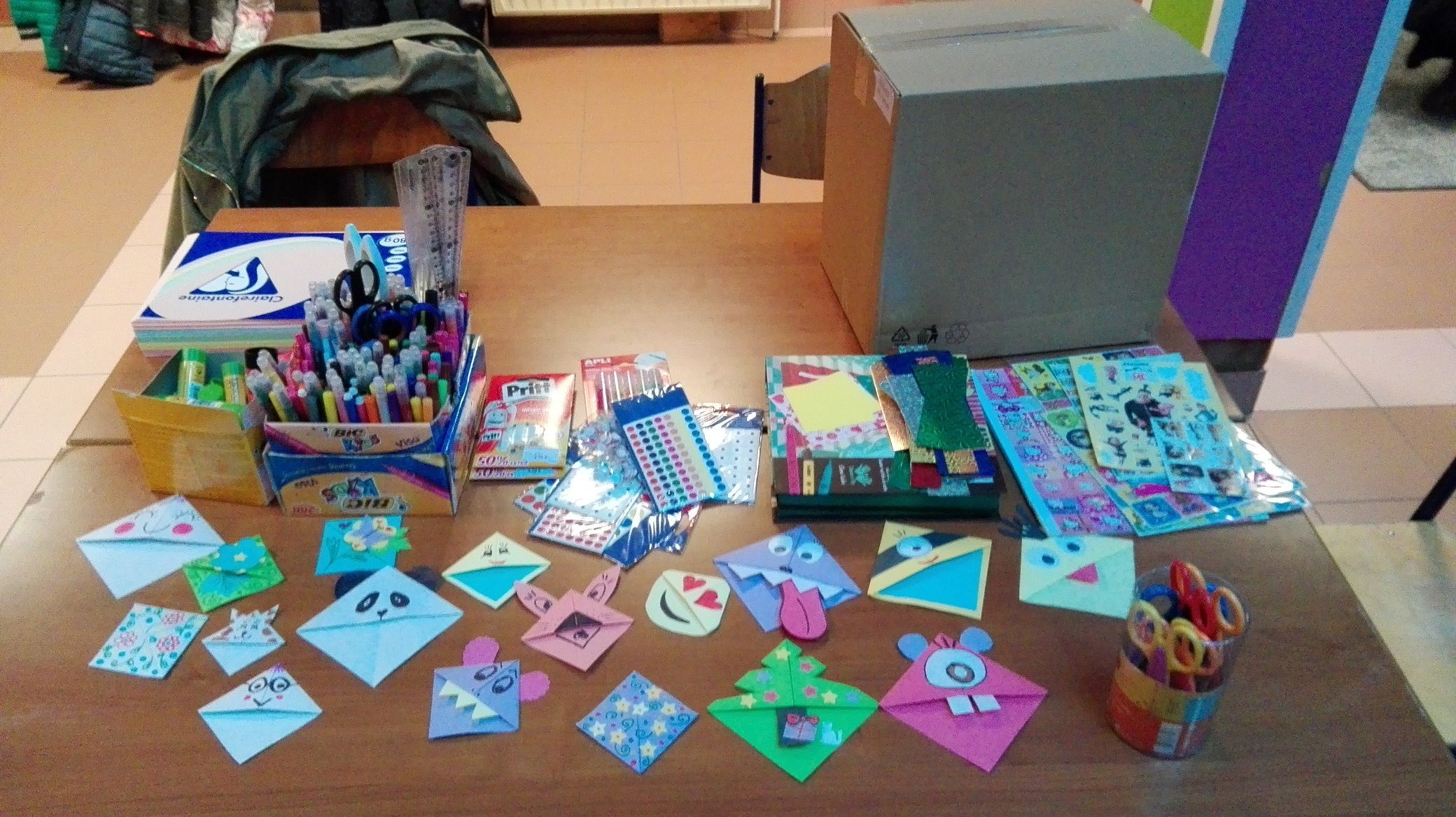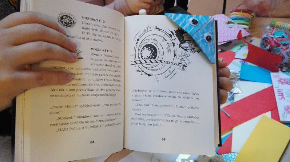 Počas akcie sme nielen predávali knihy, ale pripravili sme aj tvorivú dielňu a deti si mohli vyrábať krásne záložky. Za pomoc pri tejto tvorivej aktivite ďakujeme Zuzane Popovičovej, Lívíi Schonwiesnerovej a Franciskovi Ataxca Monterovi ktorí sa tejto úlohy zmocnili úžasne. Detí neustále pribúdalo a už tradične sa pridali aj deti z iných sekcii.